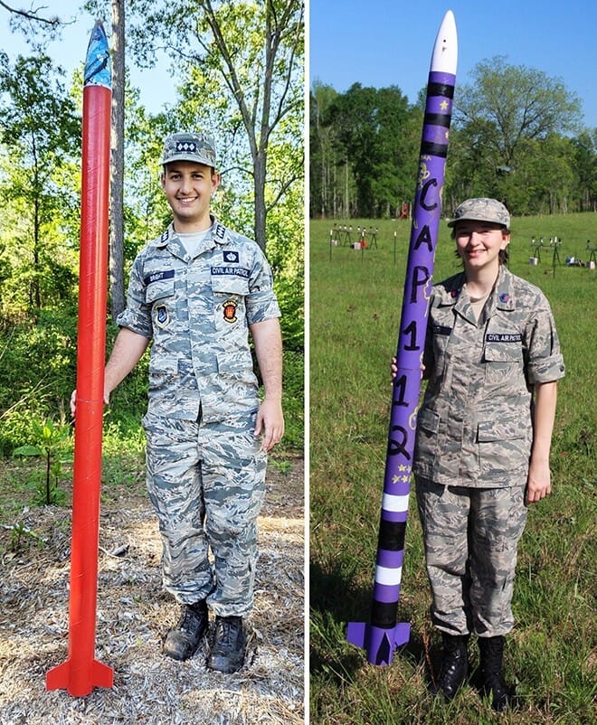 Cadet Col. Matthew Bright and his father, Capt. Michael Bright, both earned Level 1 High Power certification with their rockets’ successful flight. Both are recipients of Civil Air Patrol’s top cadet honor, the Gen. Carl A. Spaatz Award.