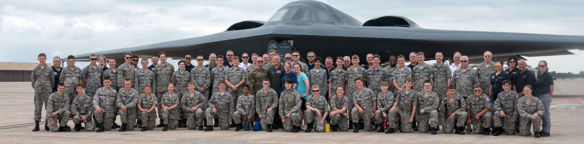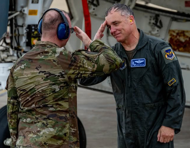 Following a break for lunch, the group was escorted to the flight line for a surprise highlight — Col. Keith Butler’s final flight, conducted in the B-2 Spirit. Civil Air Patrol didn’t know Butler would be making his final flight until less