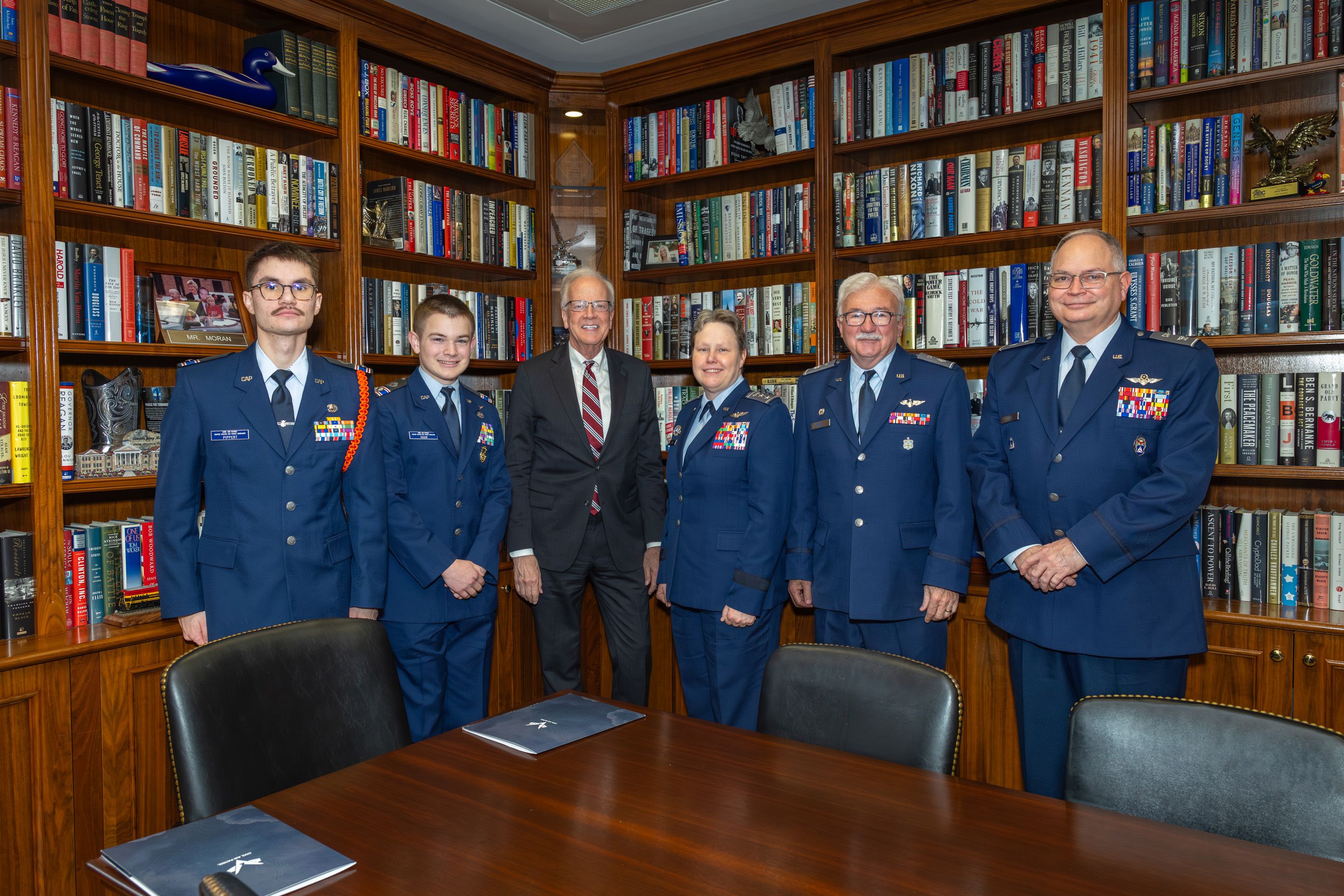 Maj. Gen. Regena M. Aye, CAP’s national commander and CEO, and members of the Kansas Wing delegation visit with U.S. Sen. Jerry Moran, R-Kan., in the Dirksen Senate Office Building.