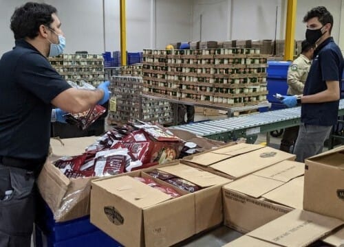 Ten members from the California Wing’s San Fernando Senior Squadron 35 recently prepare 4,000 boxes of supplies at the Los Angeles Food Bank warehouse in Industry for distribution