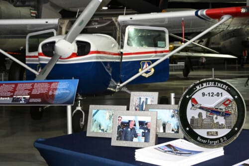 The 9/11 Civil Air Patrol Recognition Ceremony dedicated one of the newest aircraft on display at the museum — a recently retired Cessna 172 Skyhawk flown on Sept. 12, 2001, the day after the attacks. The historic CAP flight by the aircraft, tail No. N9344L, was the only nonmilitary flight allowed over New York City after air traffic was grounded Sept. 11.