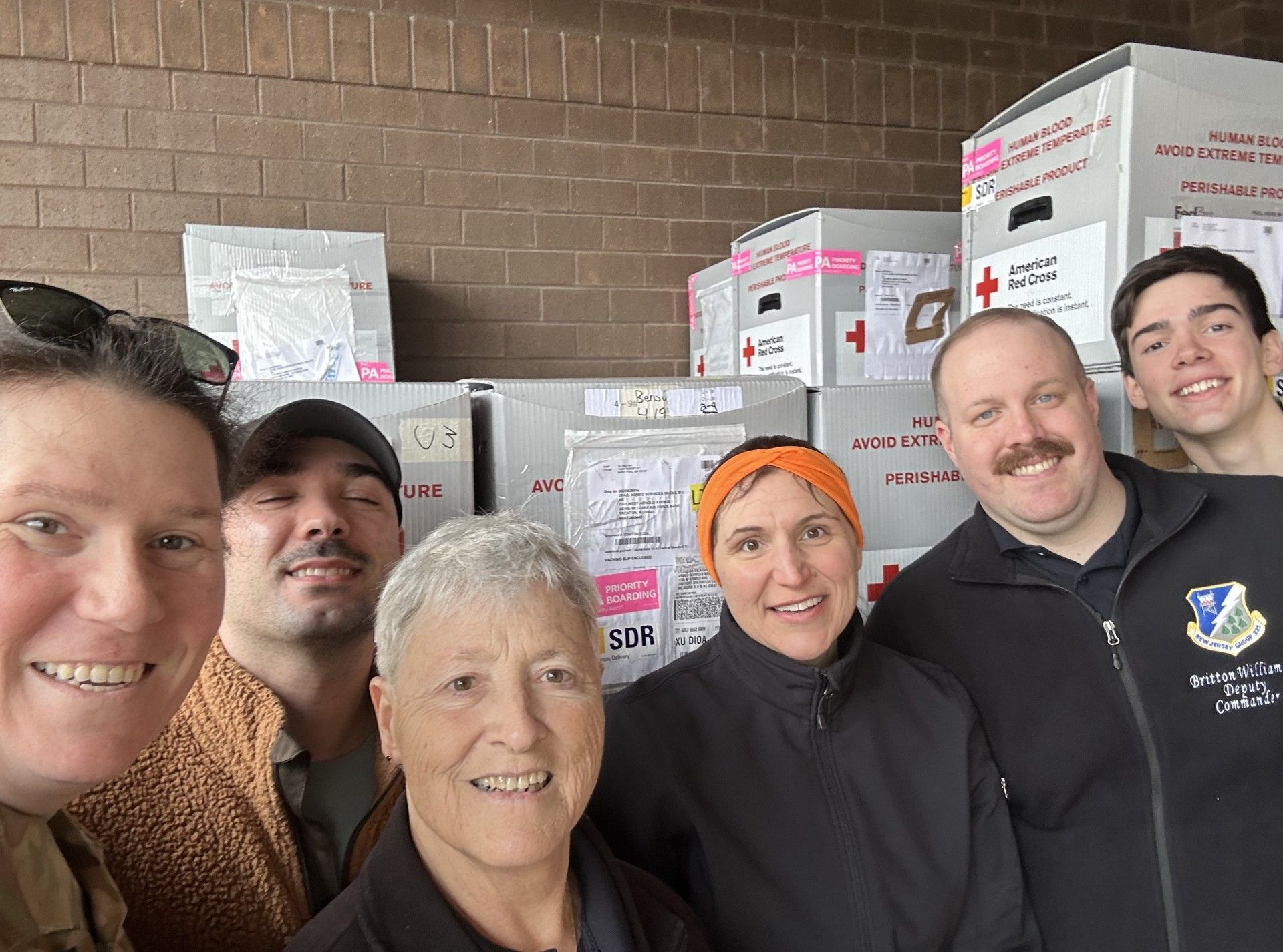 The initial CAP team consisted of Col. Myzie, Maj. Megan Kingston, the wing’s health services officer, Maj. Britton Williams, director of emergency services, and Cadet Maj. Luke Patterson. The CAP team arrived shortly after a large incoming shipment and began processing more than 40 cases of blood products.