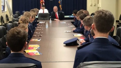 Sen. Damon Thayer, Senate majority floor leader, hosted a question-and-answer session focusing on the impact of every vote and the opinions of voters. In addition, the cadets met with Rep. Tim Moore, who discussed the importance of planning and goal-setting.