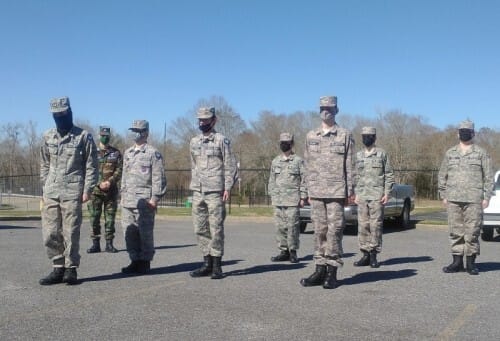 Seven cadets participated, with attendance restricted because of pandemic-related precautions. The training included discussions on Servant Leadership, Conducting an Opening Formation and Squadron Goals. Perfect weather allowed the training to move to the drill pad to practice the skills learned in the classroom.