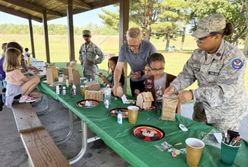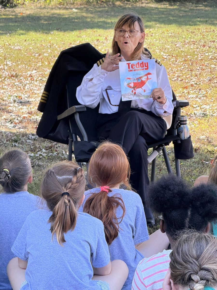 The stations included activities like “Buzzing in Flight,” kite-making, passport-style photos with a pilot, Blackburn’s special reading of her book “Teddy the Airplane,” and a coloring station featuring an original design and an aviation-themed coloring book by Cadet Staff Sgt. Logan Lancellotti, an aspiring pilot.