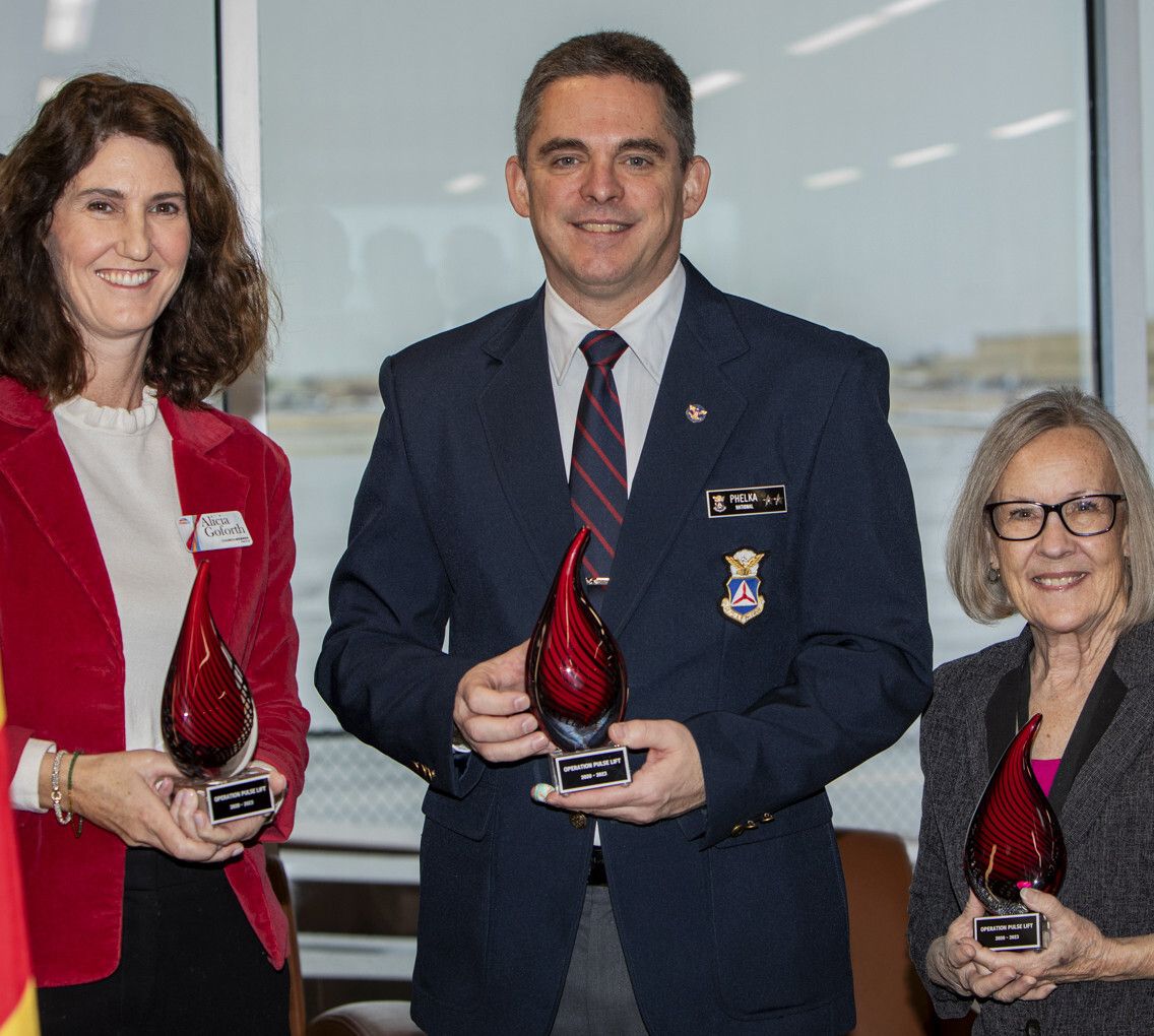 Phelka received an award made from an airplane window, thanking CAP “on behalf of the tens of thousands of blood recipients that have benefited from Operation Pulse Lift blood drives.”