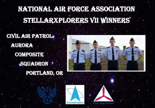 The Oregon Wing’s Aurora Composite Squadron cadet team is champion of StellarXplorers, the Air Force Association’s national STEM high school competition – marking a first for Civil Air Patrol.