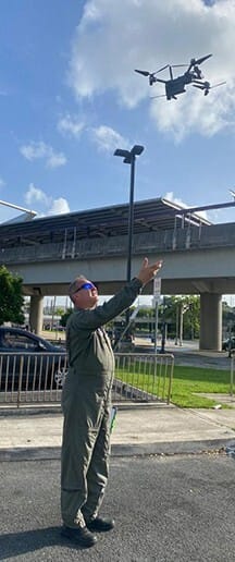 A Civil Air Patrol team using a small Unmanned Aircraft System (sUAS), or drone, photographed a damaged bridge in Jayuya, site of flash flooding, and two other sUAS teams captured images of railroad tracks from Bayamon Station to Sagrado Corazon Station at San Juan. Other sUAS flights occurred over repeater antennas in the mountainous central area of Puerto Rico and Hormigueros.